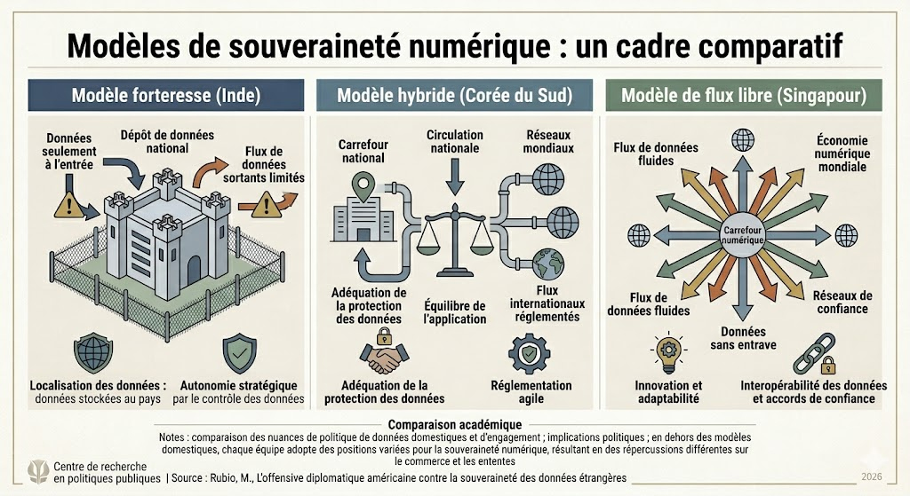 Singapour, enfin, représente le modèle du « port franc numérique », mais avec une paranoïa sécuritaire assumée. La Cité-État multiplie les accords d’économie numérique (DEA) pour garantir que les données circulent, car son économie en dépend. Cependant, elle investit des milliards dans ses propres infrastructures de confiance. Singapour sait que dans un monde où les États-Unis menacent de restreindre les flux pour des raisons de « sécurité nationale » (comme on l’a vu fin 2025), la seule vraie souveraineté réside dans la capacité à héberger et traiter ses propres données critiques. Pour ces pays, la souveraineté n’est pas un repli, c’est l’armure nécessaire pour ne pas finir en simple colonie numérique d’un empire qui ne connaît plus de limites.